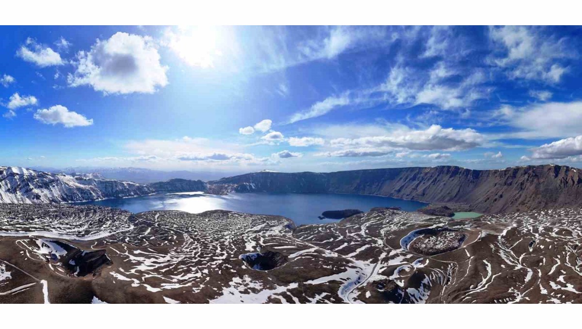 Bitlis'in Tatvan ilçesindeki dünyanın 2. büyük krater gölü olma özelliğine sahip olan ve ayı saldırıları nedeniyle yaklaşık 6 aydır ziyaret yasağının devam ettiği Nemrut Krater Gölü ve Nemrut Kalderası dronla görüntülendi.